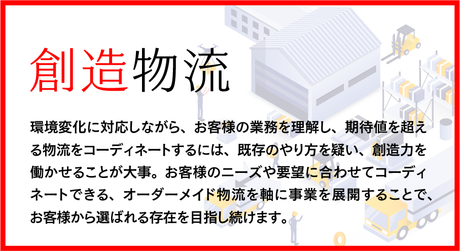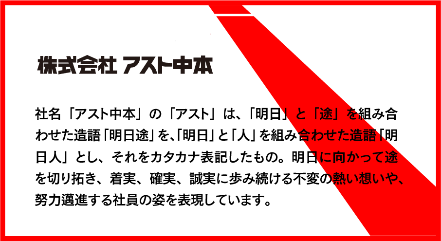 物流とは、ものを運んだり、保管するサービスである。 そうイメージされる方も多いですが、 私たちが提供するサービスは、その範囲内に止まりません。ここでは、そんなアスト中本の特長を、キーワード形式で紹介します。