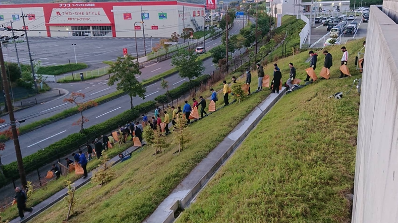 先日、アスト中本の拠点の一つであるあゆみのロジフォレストで社員有志を集めて法面の雑草抜きを行いました。 朝6時スタートにもかかわらず社員40?名程が参加してくれました。